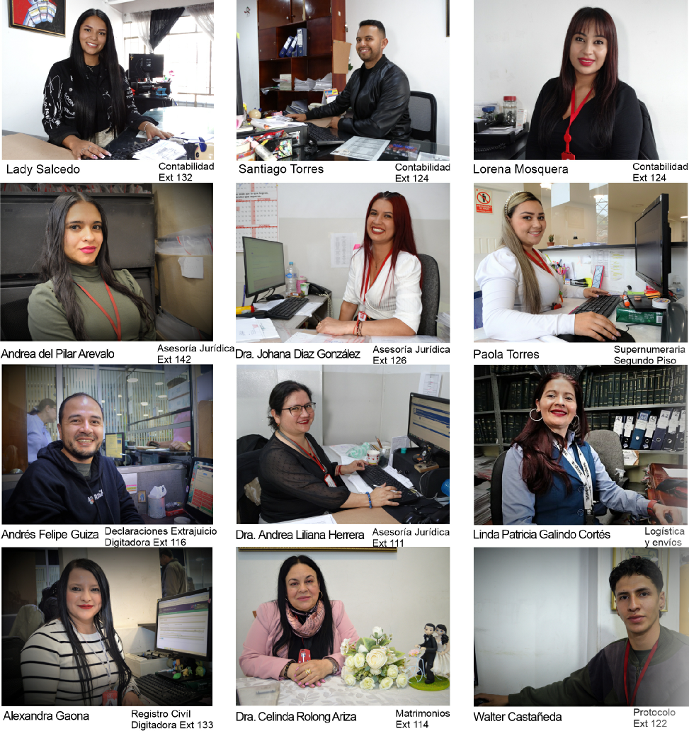 La Notaría 68 de Bogotá cuenta con un selecto equipo humano que respalda y apoya el trabajo de la Notaría. Gracias a ellos nuestro trabajo es agil, eficiente y puntual. Estamos orgullosos de nuestro comprometido equipo de colaboradores que sirve a toda la comunidad con amabiilidad, cortesia y prontitud.