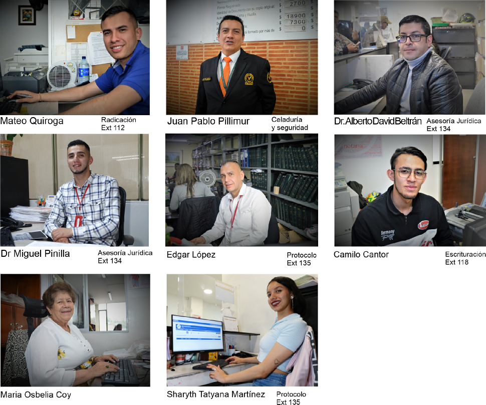 La Notaría 68 de Bogotá cuenta con un selecto equipo humano que respalda y apoya el trabajo de la Notaría. Gracias a ellos nuestro trabajo es agil, eficiente y puntual. Estamos orgullosos de nuestro comprometido equipo de colaboradores que sirve a toda la comunidad con amabiilidad, cortesia y prontitud.