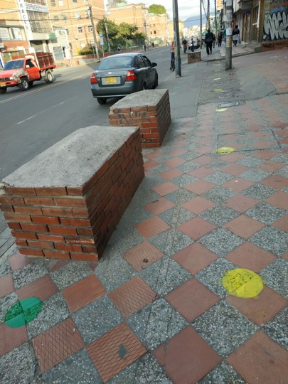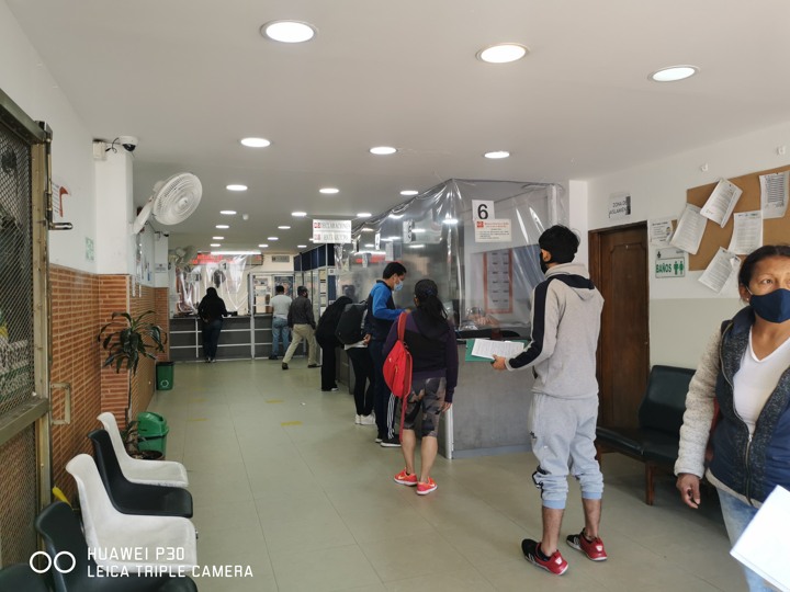 - Con el fin de agilizar y cumplir el distanciamiento social se marcaron en el anden circulos cada dos metros donde se deben ubicar las personas de acuerdo al tramite:
